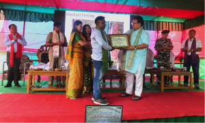Shri Tiken Ray while receving the Bodoland Green Award, 2022 from the Hon’ble Chief of BTC Shri Pramod Boro; Photo: Kaushik Deb
