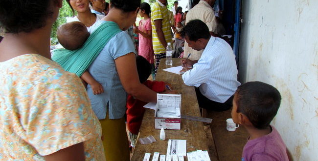A doctor attends to patients during the medical health camp at Mesimagre