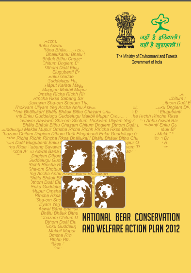 Four of the eight species of bears range in India. This National Conservation and Welfare Action Plan for bears in India follows the IUCN (2008) guidelines that involve participatory processes to ensure conservation successes. This publication was released by the Ministry of Environment and Forests during the 21st International Conference on Bear Research and Management in New Delhi and marks a singular change in the way India has looked at its bears.