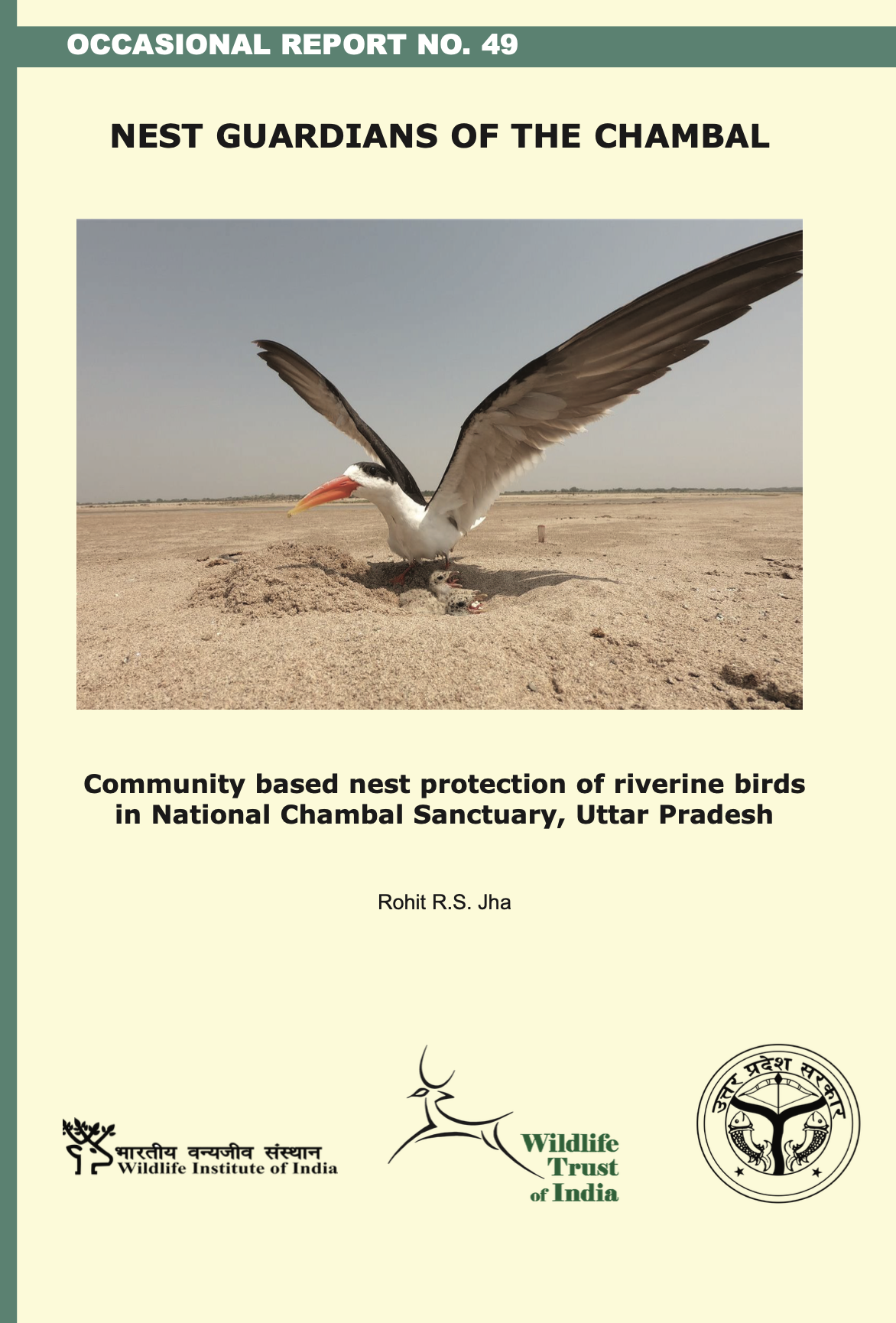 The National Chambal Sanctuary (NCS) is India’s only tri-state riverine Sanctuary and is the breeding ground of endangered Indian Skimmers (Rynchops albicollis). Past scientific projects reported that low water flow conditions in the river made way for predators like dogs and jackals resulting in egg/chick predation, as well as unintentional trampling by cattle and human movement. Recognizing that effective protection of nests and chicks required constant monitoring, a WTI Rapid Action Project was implemented to pilot a nesting-island protection programme involving members of the local community, State Forest Department and conservationists. This Occasional Report covers the project activities which resulted in two Indian Skimmer nesting sites being protected, where 42 nests were active with 54 Indian Skimmer fledglings.
